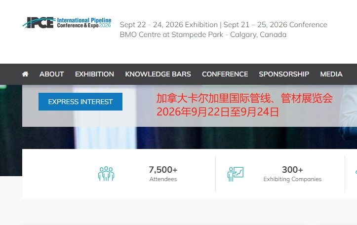 加拿大卡尔加里国际管线、管材展览会(IPCE)已举办多届,2024年的展会有来自44个国家的1300名代表参加。由代表国际能源公司、能源和管道协会以及监管机构的志愿者组织,已成为享誉国际的世界顶级管道会议。作为非营利性会议,其所得收益用于支持管道行业的教育计划和研究。该展会重点关注常规石油、重油、油砂、天然气和非常规天然气、可再生能源和海上资源。