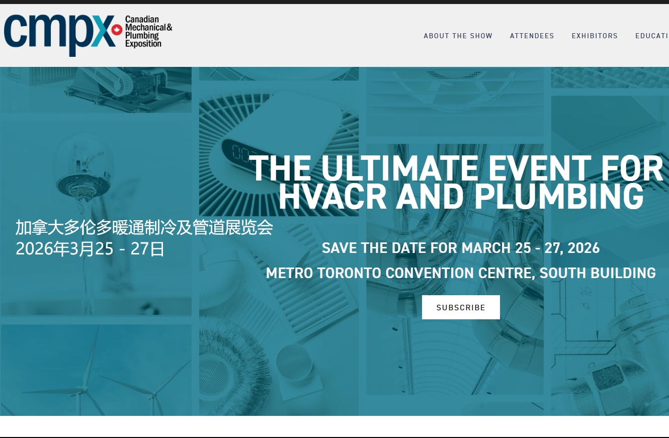 2026年加拿大暖通展CMPX20262026年3月25-27日 加拿大多伦多METROTORONTOCONVENTIONCENTRE 400多家参展商 展品内容:暖通、空调、