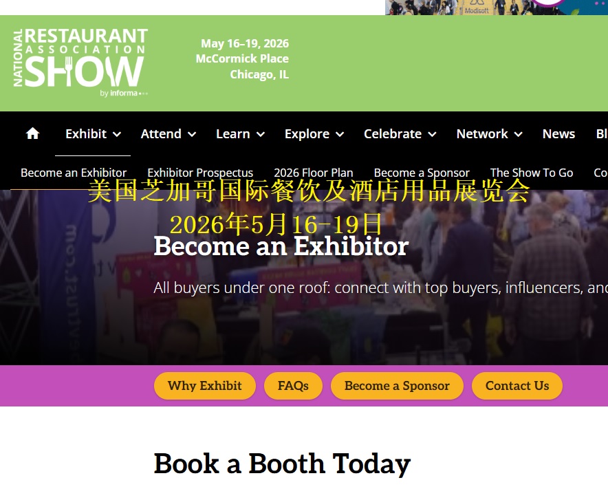 展览名称:美国芝加哥国际餐饮及酒店用品展览会英文名称:NationalRestaurantAssociationShow(NRAShow2026