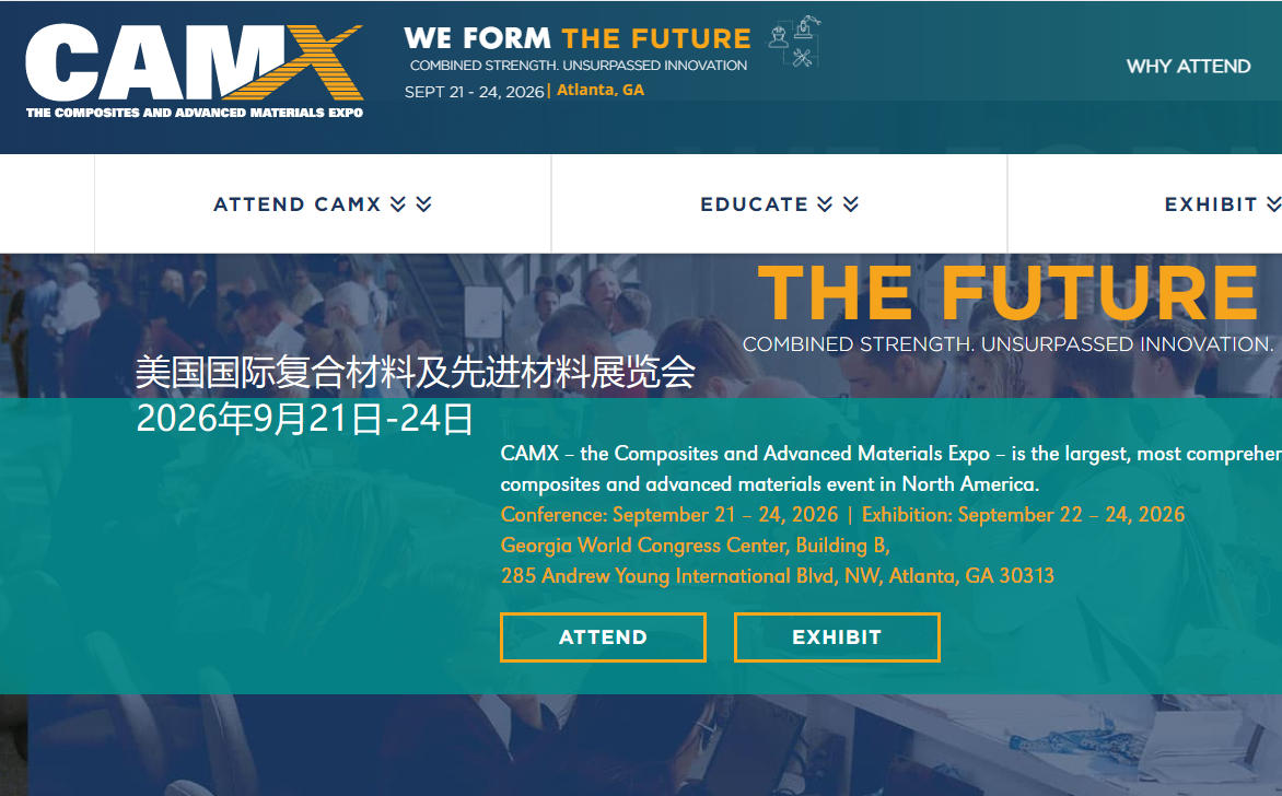 展会官方网站:https://www.thecamx.org/(关键词:CAMX官方网站、美国复合材料展会官网)