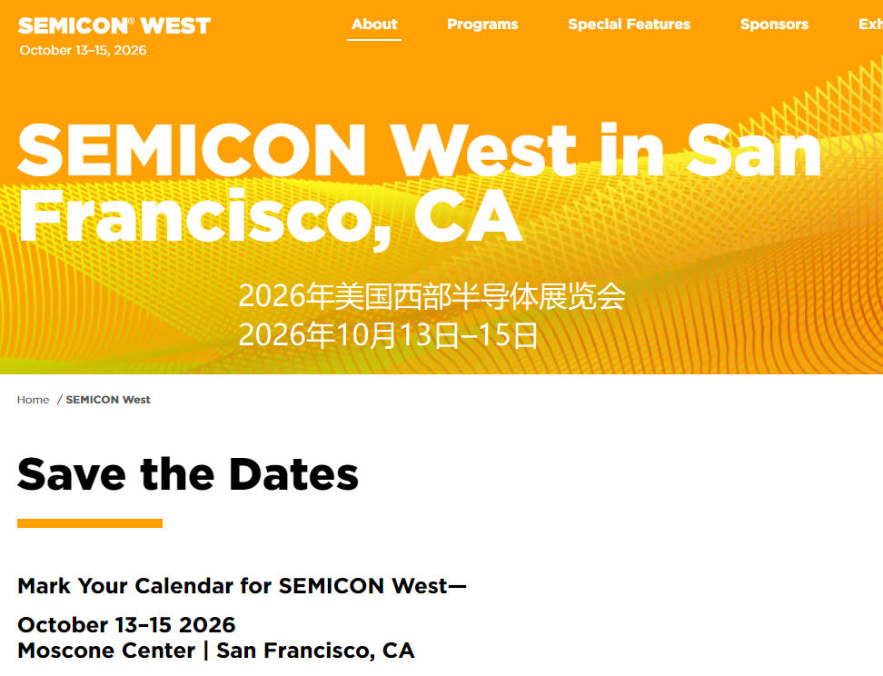 2026年美国西部半导体展览会展览名称:2026年美国西部半导体展览会英文名称:SEMICONWest2026展览时间:2026年10月13日–15日(周二–